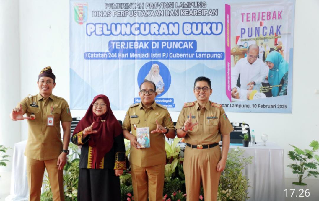 Bandarlampung, – (D.Net) Penjabat (Pj) Gubernur Lampung, Samsudin, didampingi Pj. Bunda Literasi Provinsi Lampung, Maidawati Retnoningsih menghadiri peluncuran Buku “Terjebak di Puncak”, bertempat di Dinas Perpustakaan dan Kearsipan Provinsi Lampung, Senin (10/2/2025).