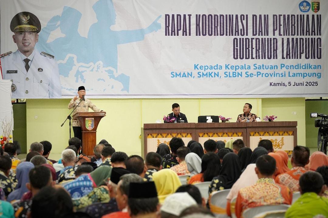 Hal ini disampaikan Gubernur Mirza dalam pengarahan kepada Kepala Satuan Pendidikan SMAN, SMKN, dan SLBN se-Provinsi Lampung di Aula SMAN 2 Bandar Lampung, Kamis (5/6/2025).