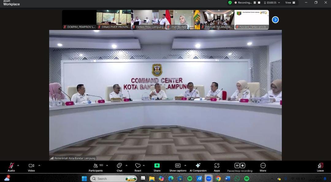 Bandarlampung, – Pemerintah Provinsi Lampung menggelar Rapat Koordinasi terkait Keamanan Pangan, Penanganan dan Pencegahan Keracunan Makanan Program Makan Bergizi Gratis (MBG) yang diikuti oleh Pemerintah Kabupaten/Kota secara virtual se-Provinsi Lampung, pada Rabu (10/09/2025).