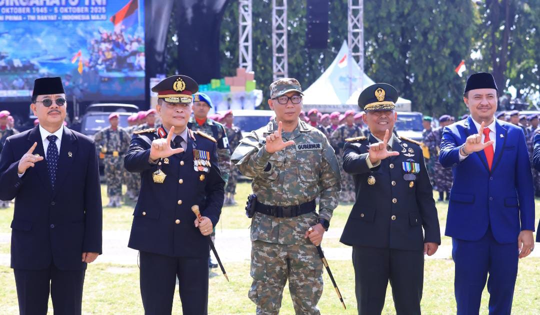 Bandarlampung, – Gubernur Lampung Rahmat Mirzani Djausal menghadiri Upacara Peringatan Hut ke-80 Tentara Nasional Indonesia yang digelar di Lapangan Korpri Kantor Gubernur, Minggu (05/10/2025).