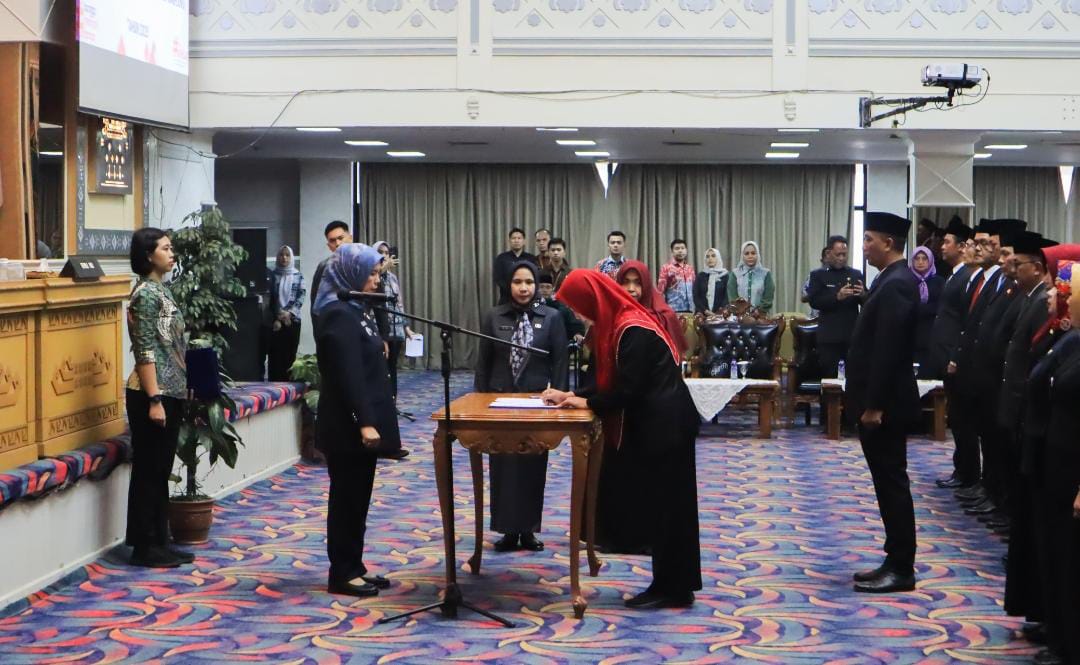 Bandar Lampung, – Gubernur Lampung diwakili oleh Inspektur Provinsi Lampung, Bayana melantik dan mengambil sumpah/janji jabatan pejabat administrator, pejabat pengawas, dan pejabat fungsional di lingkungan pemerintah Provinsi Lampung bertempat di Balai Keratun Lt III, Komplek Kantor Gubernur, Bandar Lampung, Jumat (10/10/2025).