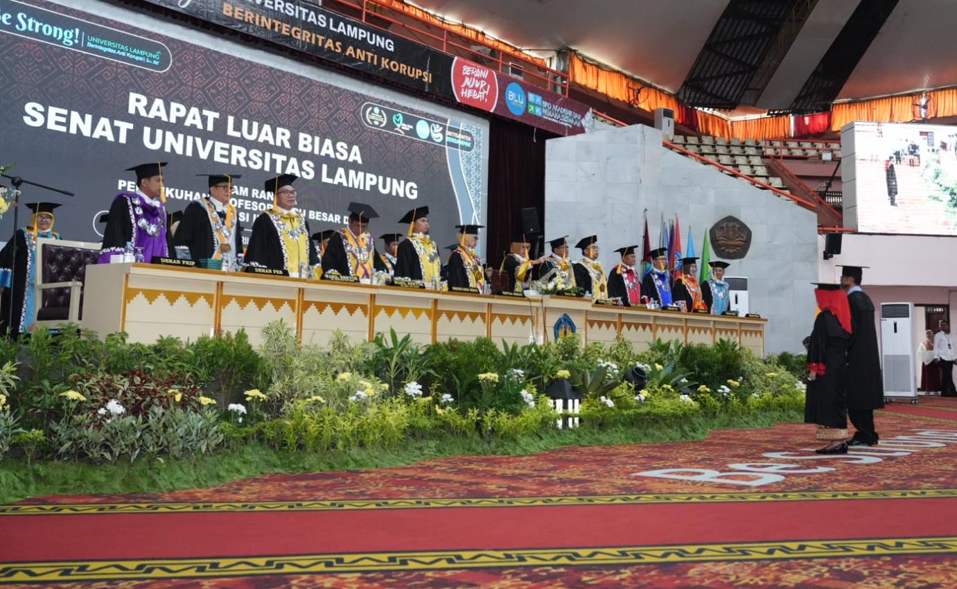 Pengukuhan guru besar ini menegaskan komitmen Unila dalam memperkuat kualitas akademik serta perannya sebagai institusi pendidikan tinggi yang berkontribusi bagi pembangunan daerah, nasional, dan global. [Magang_Yeshicha Indah]